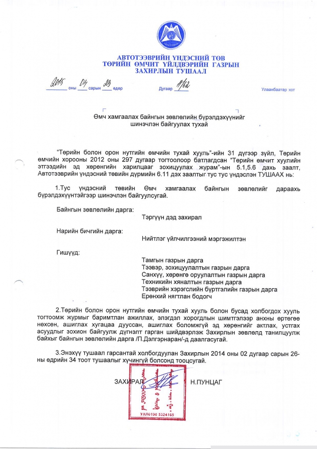 Зөвшөөрлийн бичгийн үнийг түр хугацаатай шинэчлэн өөрчлөх тухай |