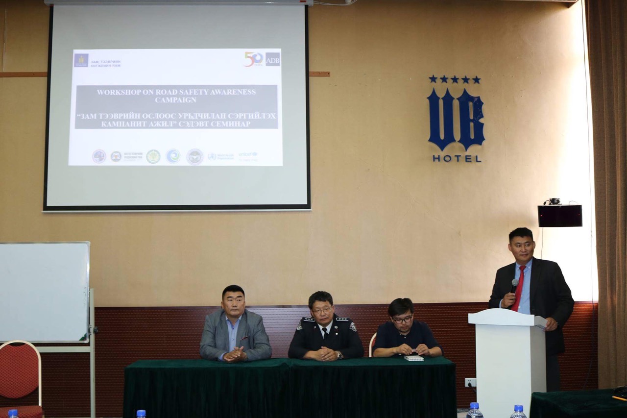Зам, тээврийн хөгжлийн яам, Азийн хөгжлийн банк /ADB/ хамтран Монгол Улсад тээврийн ухаалаг системийг хөгжүүлэх стратеги боловсруулах болон замын хөдөлгөөний аюулгүй байдалд аудит хийх тогтолцоог бүрдүүлэх зорилгоор “Замын хөдөлгөөний аюулгүй байдлыг хангах, бодлого, хэрэгжүүлэх үйл ажиллагааны төлөвлөгөө боловсруулах” нь төслийг хэрэгжүүлэн ажиллаж байна. Уг төслийн хүрээнд “Зам тээврийн ослоос урьдчилан сэргийлэх кампанит ажил” сэдэвт семинарыг 2017 оны 9 дүгээр сарын 13-ны өдөр зохион байгууллаа.