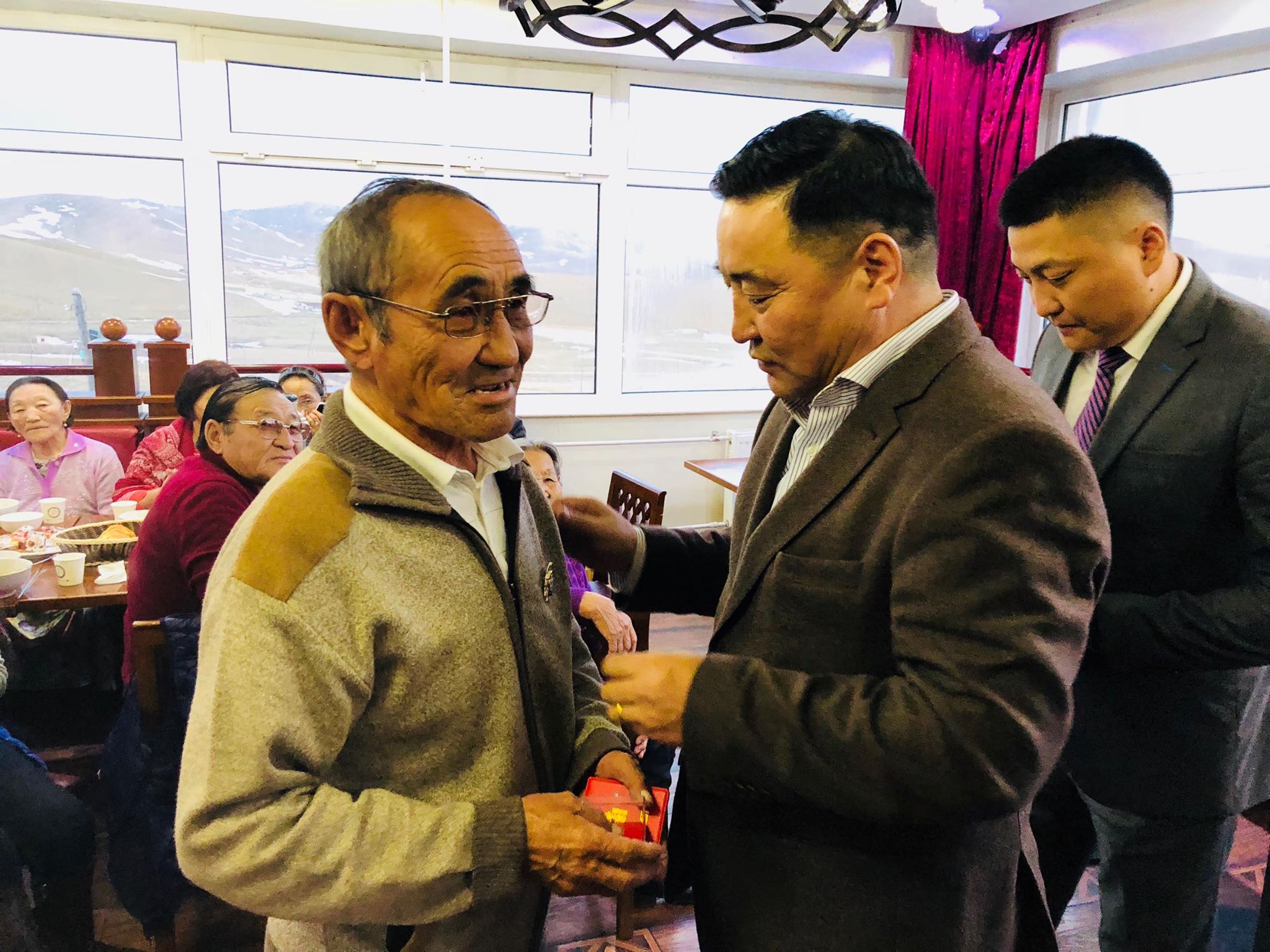 Мөн Монгол Улсын Баруун хил дээр болсон зэвсэгт тулгаралтын 70 жилийн ойг энэ онд тэмдэглэсэнтэй холбогдуулж уг тулгаралтад оролцож явсан 90 настай ахмад дайчин Т.Батсуурьт баяр хүргэж, тусгай шагнал гардууллаа.