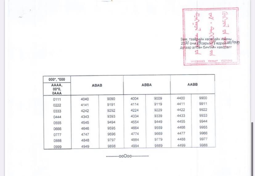 Тухайлбал Зам, тээврийн хөгжлийн дэд сайдын 2020.09.18-ны өдрийн чиглэл өгөх тухай албан бичгийн дагуу иргэдийн сонирхдог, “азын” гэх дугааруудыг нийтэд шинээр олгохыг зогсоохоор болов.