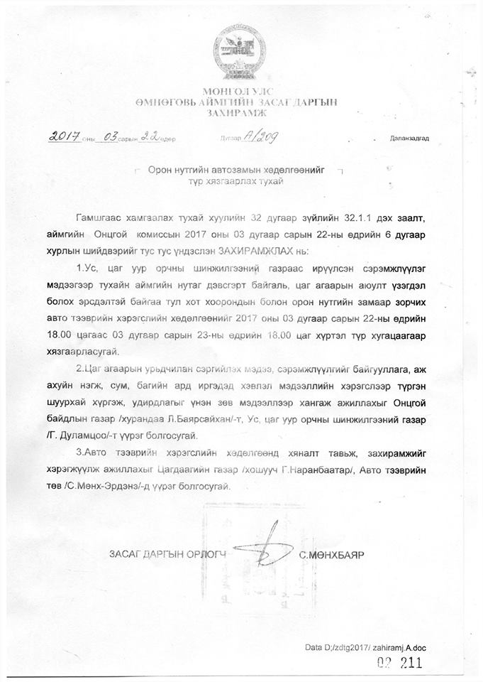 ШУУРХАЙ МЭДЭЭ: Өмнөговь аймгийн зорчих хөдөлгөөнийг түр хязгаарлалаа.