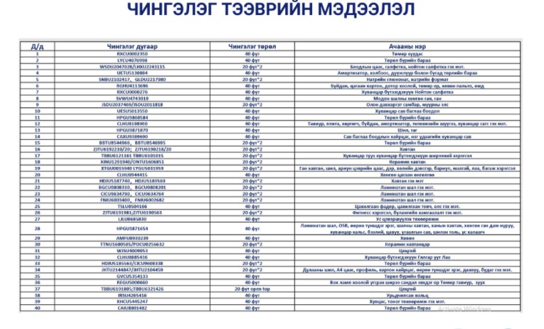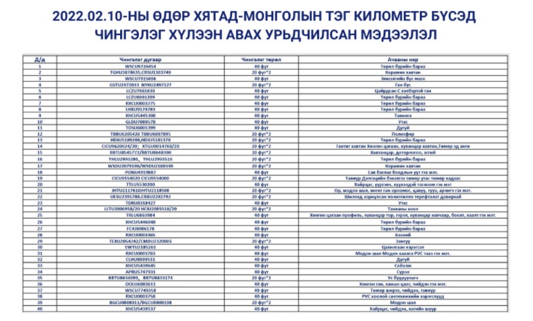 Чингэлэг тээврийн мэдээлэл 2 сарын 10