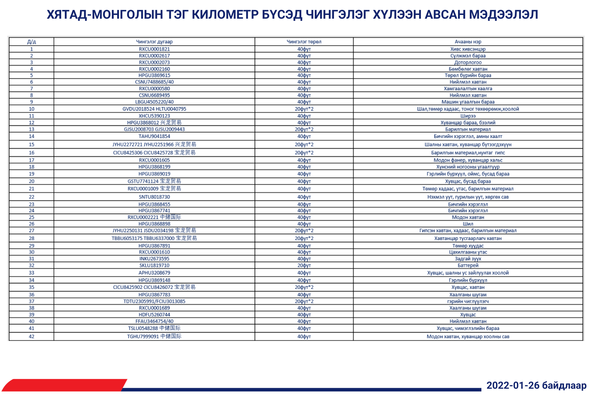 Замын-Үүд боомтын тээвэрлэлтийн мэдээ