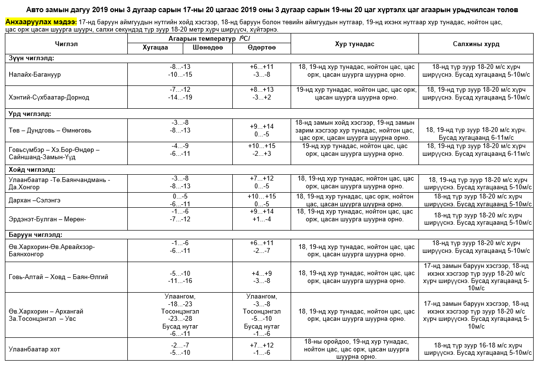 ИРГЭД, ТЭЭВЭРЧДИЙН АНХААРАЛД!!! ЦАГ АГААРЫН АЮУЛТАЙ ҮЗЭГДЛЭЭС СЭРЭМЖЛҮҮЛЭХ МЭДЭЭ