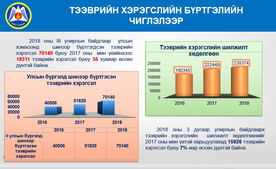 Улсын бүртгэлд бүртгэлтэй тээврийн хэрэгслийн статистик тоо