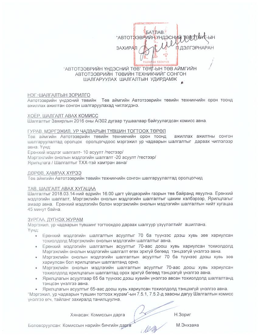 • Автотээврийн Хэрэгслийн Засвар Үйлчилгээний Баталгаажуулалт