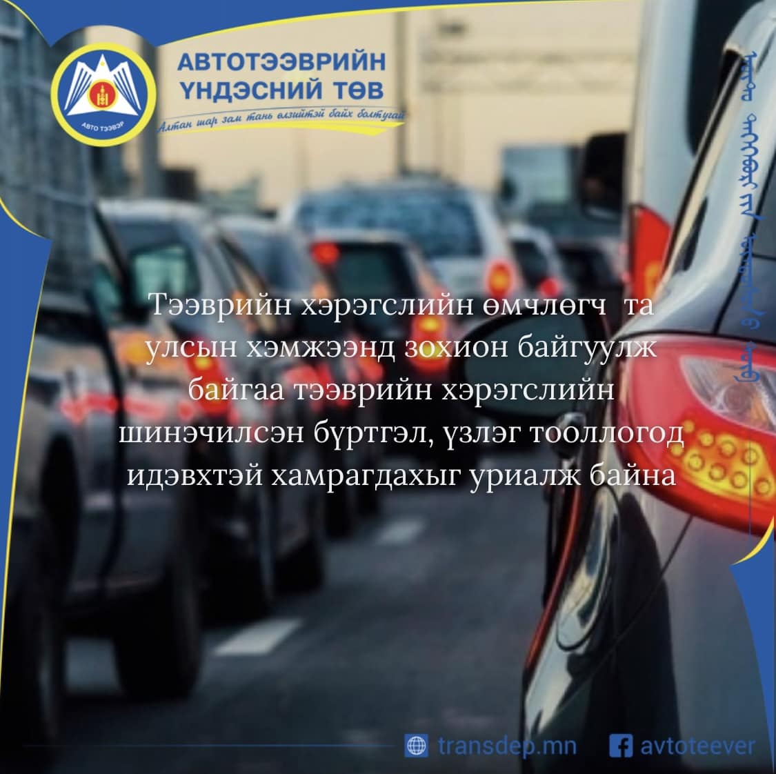 Тээврийн хэрэгслийн шинэчилсэн бүртгэл явагдаж байна