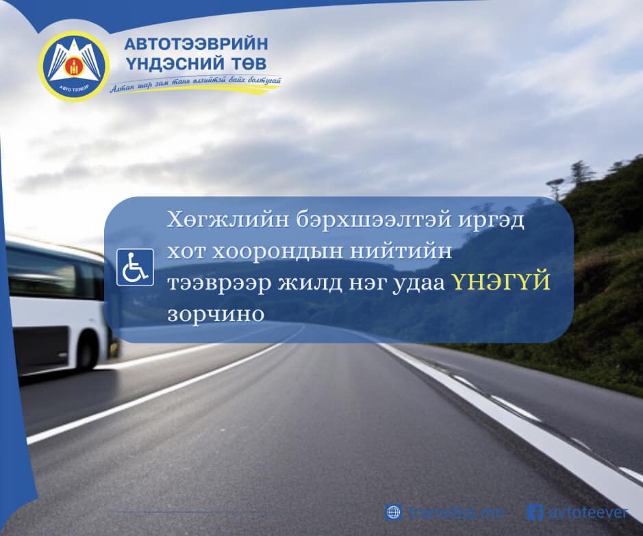 Хөгжлийн бэрхшээлтэй иргэн жилд нэг удаа, нэг чиглэлд үнэ төлбөргүй зорчино