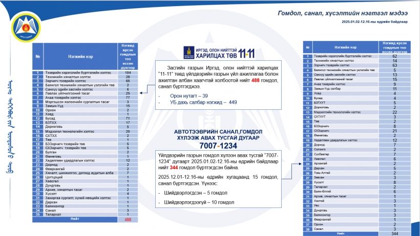 “АВТОТЭЭВРИЙН ҮНДЭСНИЙ ТӨВ” ТӨҮГ-т ирүүлсэн өргөдөл, гомдлын шийдвэрлэлтийн тайлан