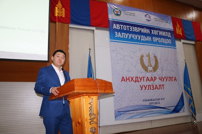 Автотээврийн салбарын залуучуудын “Автотээврийн хөгжилд залуучуудын оролцоо” сэдэвт анхдугаар чуулга, уулзалт өнөөдөр зохион байгуулагдлаа. Тус чуулга уулзалтад УИХ-ын гишүүн Г.Тэмүүлэн, Зам, тээврийн хөгжлийн дэд сайд Б.Цогтгэрэл, Зам, тээврийн хөгжлийн яамны АТБХЗГ-ын дарга С.Батболд болон Автотээврийн үндэсний төвийн удирдах зөвлөл тэргүүтэй тус үйлдвэрийн газрын залуучууд 200 гаруй төлөөлөл оролцлоо.