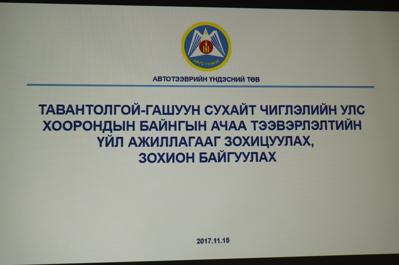 Автотээврийн үндэсний төвөөс Тавантолгой–Гашуунсухайт чиглэлийн улс хоорондын байнгын ачаа тээвэрлэлтийг хэрхэн нэгдсэн зохион байгуулалтад оруулах талаар болон өнгөрсөн амралтын өдрүүдэд хийсэн томилолтын үр дүн, зөрчил дутагдал мөн түүнийг хэрхэн шийдвэрлэх талаар танилцуулга хийлээ.Танилцуулгын хүрээнд Тээвэр төлөвлөлтийн программыг хэвшүүлэх, Авто аж ахуйн системийг сайжруулах мөн ЗТХЯ-ны тушаал захиргааны статистикийн маягтыг албажуулах талаар заавар зөвлөгөө өгч зөрчил дутагдалаа арилган ажиллахыг анхааруулсан юм.Ирэх долоо хоногийн Засгийн газрын хуралдаанаар тус тээвэрлэлтийн үйл ажиллагааны талаар танилцуулах бөгөөд тодорхой шийдвэр гарсны дараа шат дараатай арга хэмжээнүүдийг авах юм байна.
