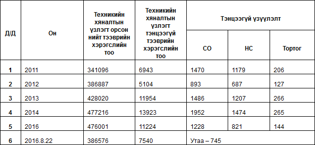 Тээврийн хэрэгслээс ялгарч буй утааны хор уршиг, сөрөг үр дагаварт хяналт шалгалт хийж, зөвлөмж өгөн ажиллаж байна
