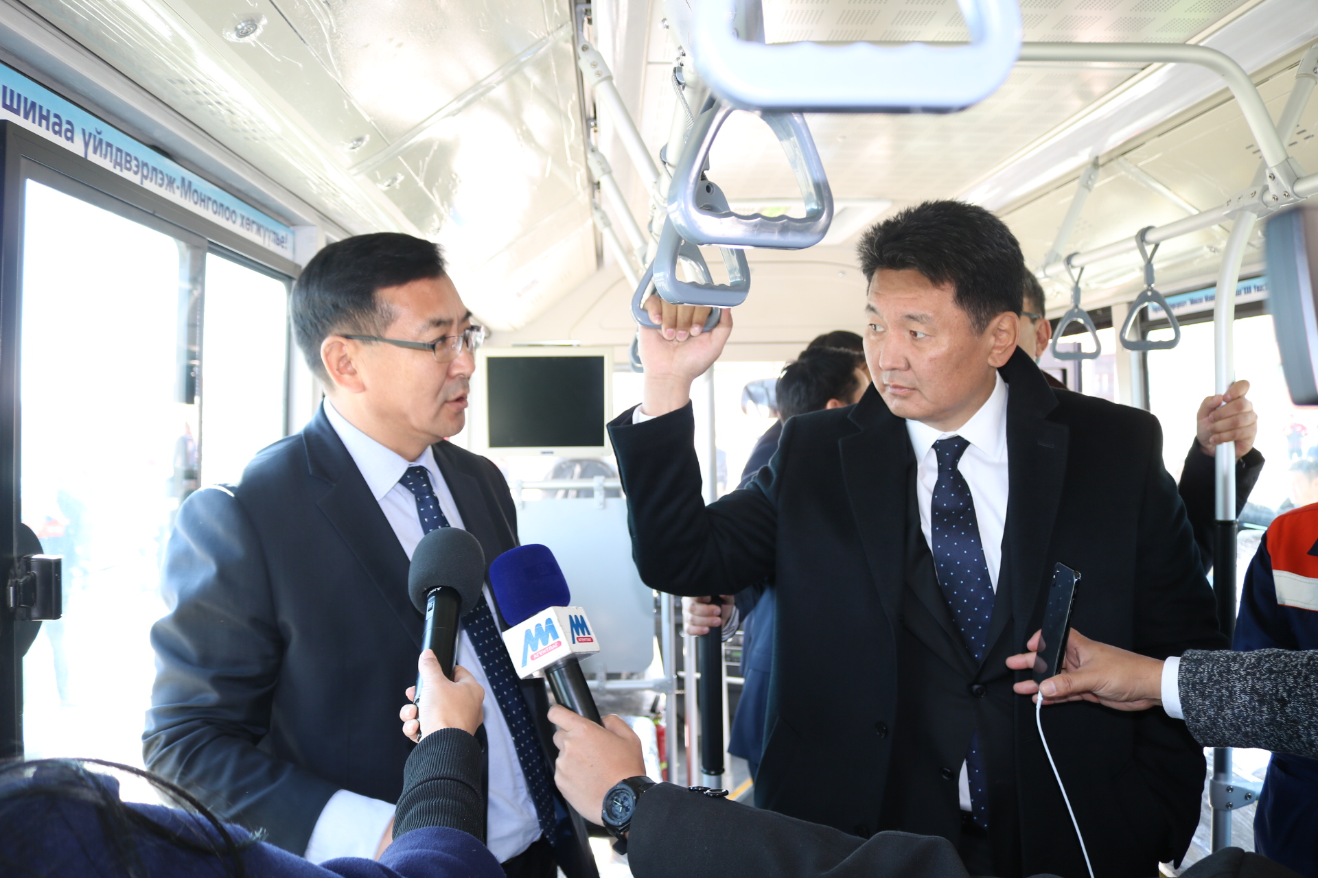 Зам, тээврийн хөгжлийн яамны Автотээврийн бодлогын хэрэгжилтийг зохицуулах газрын дарга С.Батболд “Япон Улсын ЖАЙКА төслийн хүрээнд Улаанбаатар хотын нийтийн тээвэрт ашиглагдаж буй том оврын автобуснуудад утааны шүүлтүүр суурилуулж, туршилтын ажил хийсэн. Тус туршилтаар 1 автобус 200 км-т 200 грамм орчим PM тортог ялгаруулж байгаа бөгөөд нийтийн тээврийн үйлчилгээнд явж буй том оврын автобуснууд жилд дундажаар 70 орчим тонн РМ тортог ялгаруулж байна гэсэн үг. Тиймээс цахилгаан автобус ашигласнаар автомашинаас ялгарах хорт утааны асуудлыг шийдэх ач холбогдолтой” хэмээн Ерөнхий сайдад танилцууллаа.