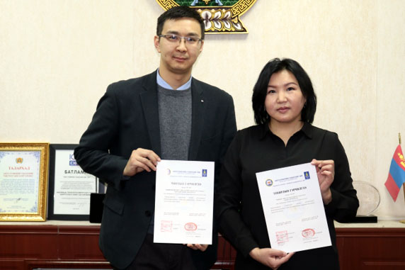 Тохирлын баталгаанд хамрагдахаар хүсэлт гаргасан автотээврийн хэрэгслийн засвар үйлчилгээний чиглэлээр ажил үйлчилгээ эрхэлж байгаа “Бавариа Моторс” ХХК, “Тарант” ХХК,-ын үйл ажиллагаанд үнэлгээ хийж тохирлын гэрчилгээг “Автотээврийн үндэсний төв” ТӨҮГ-ын Тэргүүн дэд захирал Б.Мөнхгарьд, Судалгаа хөгжил, чанарын удирдлагын төвийн дарга Н.Зориг нар олголоо.