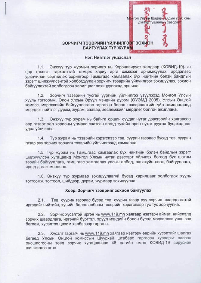 Зорчигч тээврийн үйлчилгээг зохион байгуулах түр журам