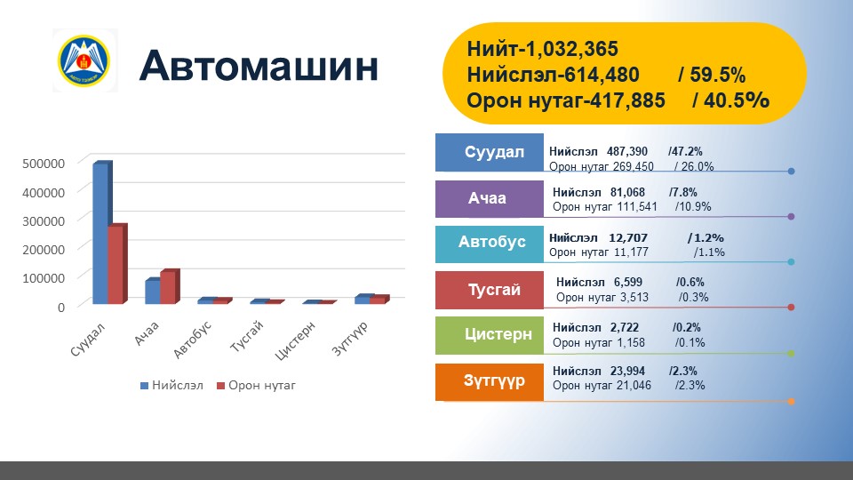 Тээврийн хэрэгслийн бүртгэлийн статистик тоон мэдээ