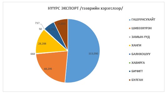 Оны өссөн дүнгээр Гашуунсухайт боомтын чиглэлд нийт 113090 тээврийн хэрэгслээр 13,2 сая.тн нүүрс буюу нийт автотээврээр нүүрс экспортын 56%, Шивээхүрэн боомтын чиглэлд 48295 тээврийн хэрэгслээр 5,9 сая.тн нүүрс буюу нийт автотээврээр нүүрс экспортын 25%, Дорноговь аймгийн Ханги боомтын чиглэлд 28288 тээврийн хэрэгслээр 2.07 сая.тн нүүрс буюу нийт автотээврээр нүүрс экспортын 9%, Ховд аймгийн Булган боомтын чиглэлд 15833 тээврийн хэрэгслээр 1.4 сая.тн нүүрс буюу нийт автотээврээр нүүрс экспортын 6%, Сүхбаатар аймгийн Бичигт боомтын чиглэлд нийт 12792 тээврийн хэрэгслээр 0.9 сая.тн нүүрс буюу нийт автотээврээр нүүрс экспортын 4%-ийг тус тус эзэлж байна.