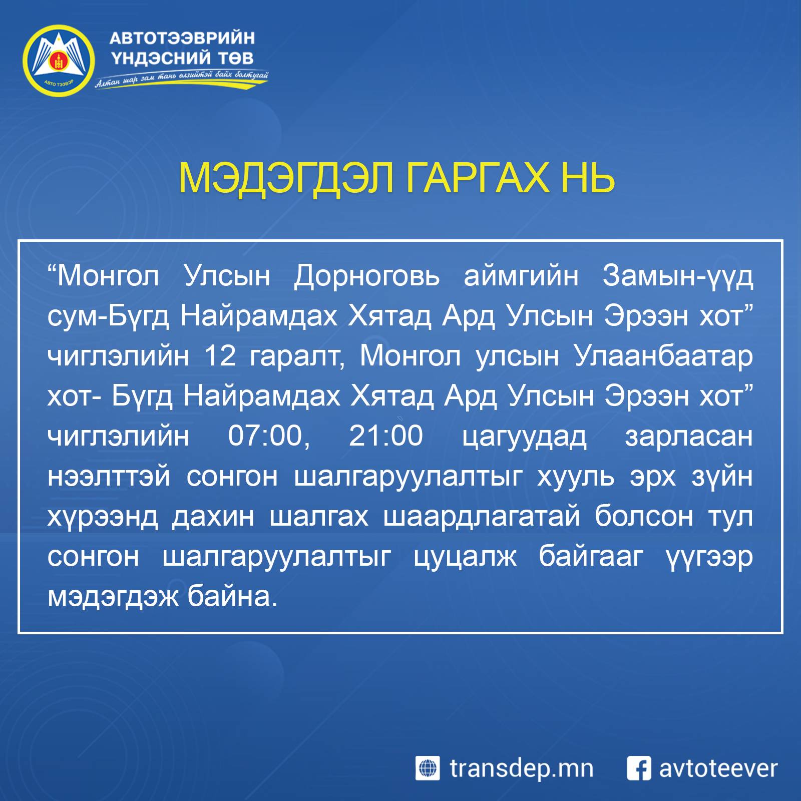 Та замд явж буй нийтийн зорчигч тээврийн хэрэгслийн байршлын мэдээллийг 70070012 дугаараас 24 цагийн турш авах боломжтой.