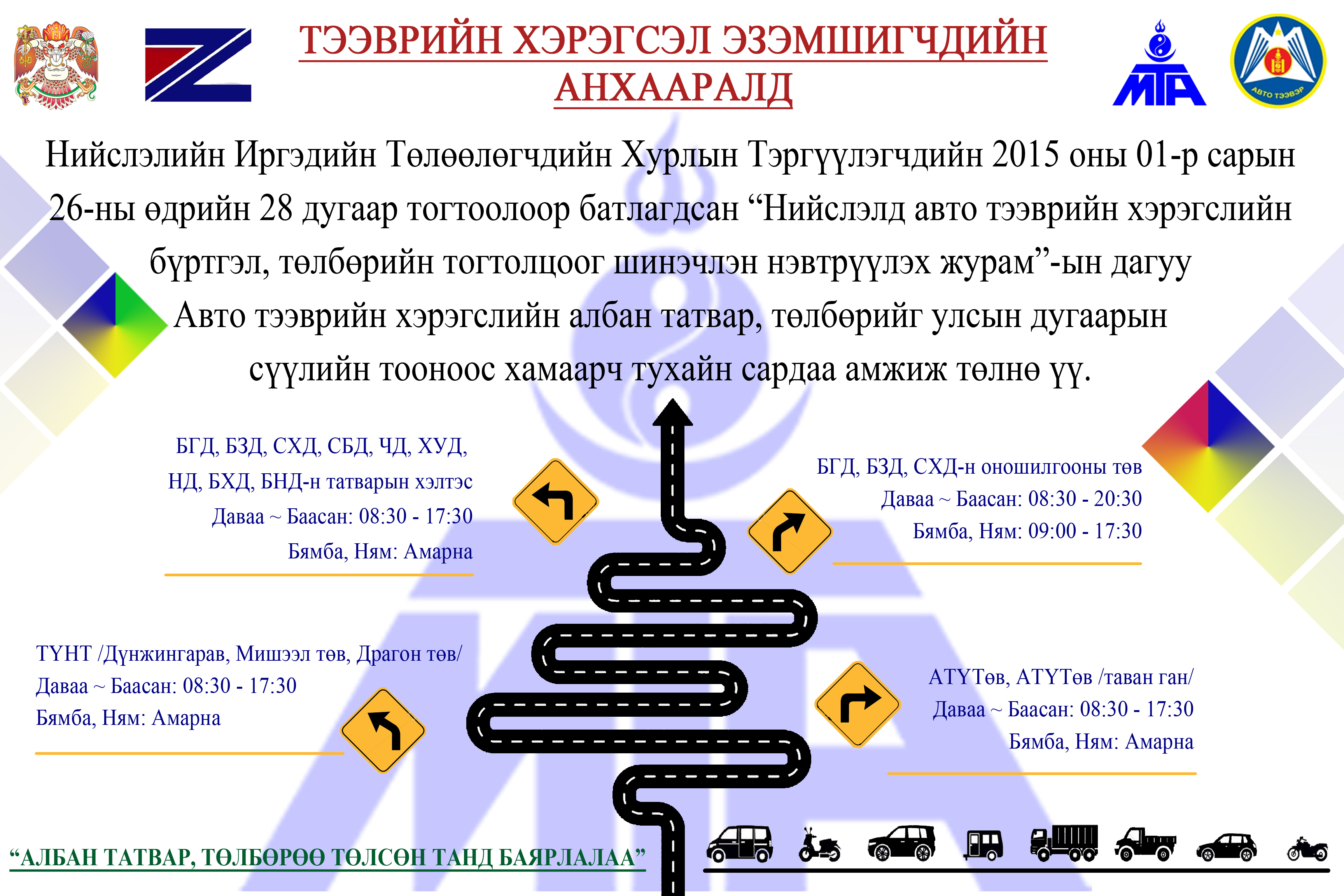 Тээврийн хэрэгсэл эзэмшигчдийн анхааралд!