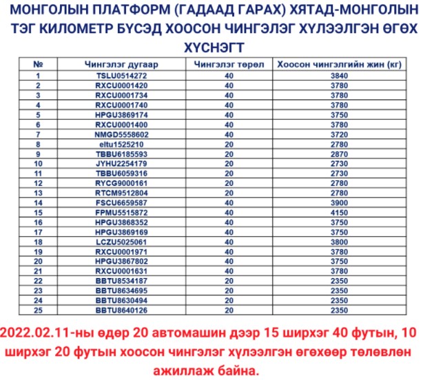 Чингэлэг тээврийн мэдээлэл 2 сарын 11