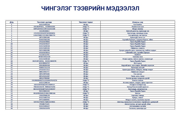Чингэлэг тээврийн мэдээлэл 2 сарын 10