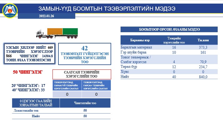 Замын-Үүд боомтын тээвэрлэлтийн мэдээ