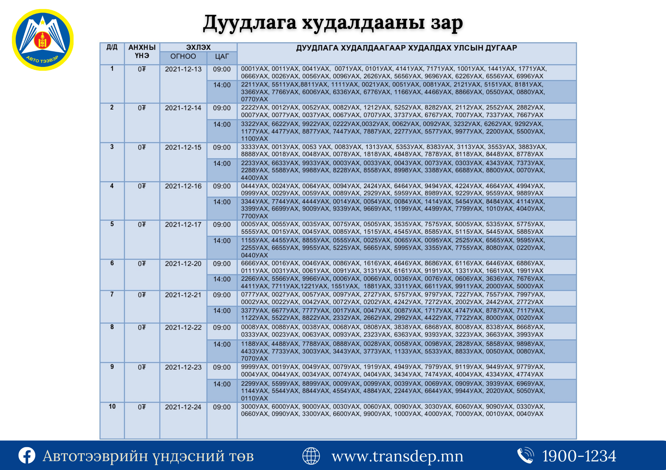 Тээврийн хэрэгслийн улсын дугаарын НЭЭЛТТЭЙ ДУУДЛАГА ХУДАЛДААНЫ ЗАР Cери - УАХ