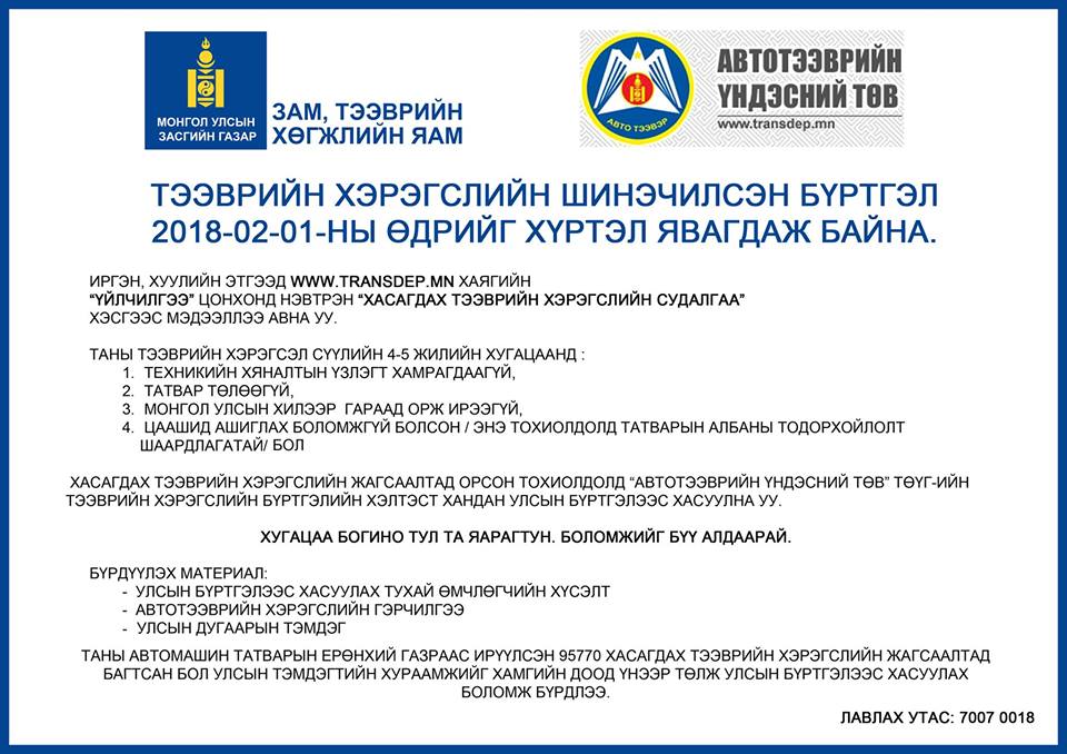 • Тээврийн хэрэгслийн бүртгэл