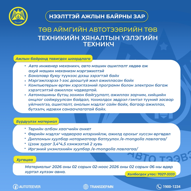 АЖЛЫН БАЙРНЫ ЗАР 2026